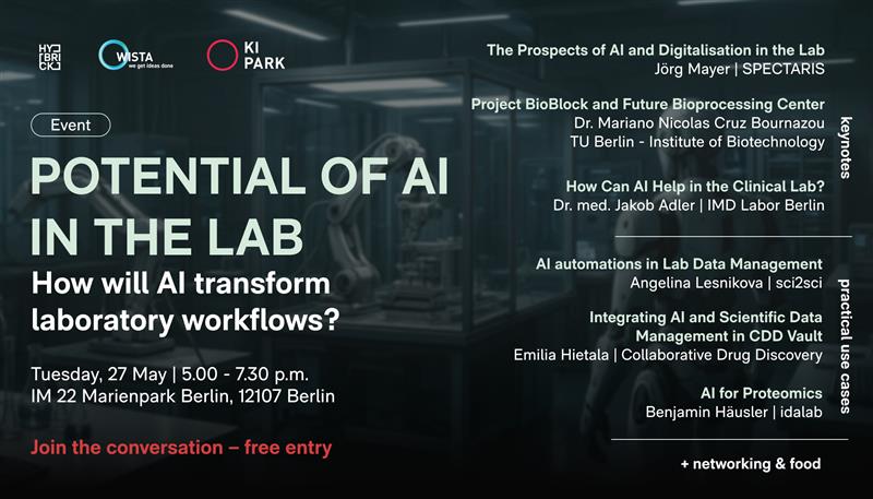 Genau deshalb laden wir Sie zusammen mit der WISTA Management GmbH und dem KI Park e.V. am 27. Mai zu einem inspirierenden Deep-Dive in die Welt der Labor-KI ein.