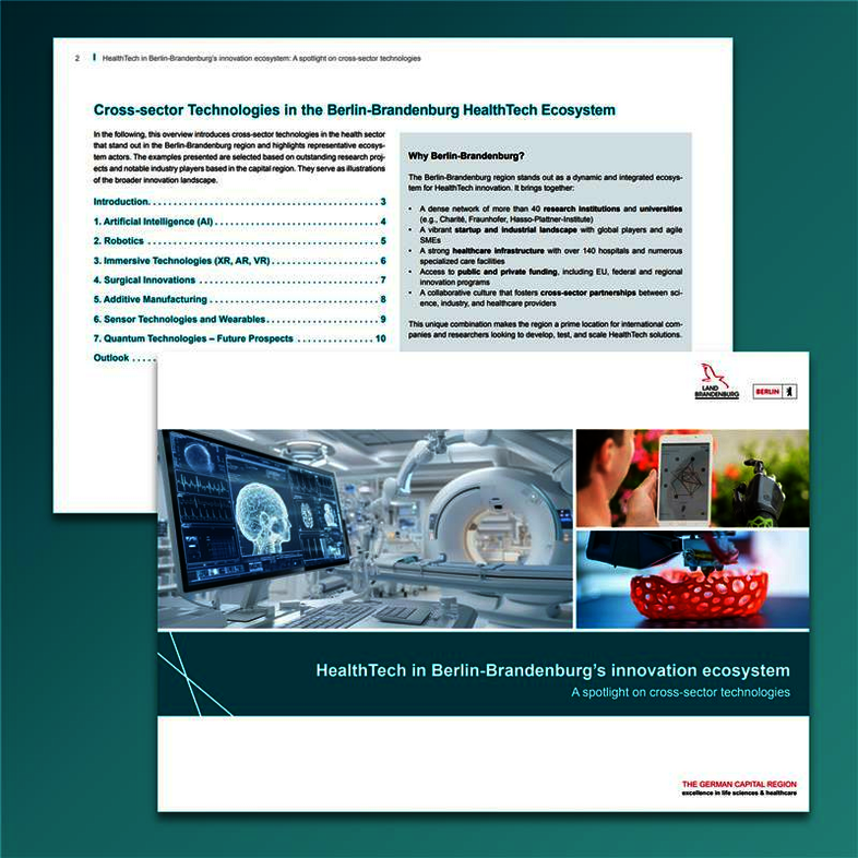 Berlin-Brandenburg gehört zu den führenden Medizintechnikstandorten in Europa und weist seit vielen Jahren eine hohe Wachstumsdynamik auf. Rund 380 Unternehmen erwirtschaften mit etwa 16.900 Beschäftigten einen jährlichen Umsatz von 1,5 Mrd. Euro. Die Unternehmen sind klein bis mittelständisch geprägt, befinden sich aber in ihren Geschäftsfeldern unter den Weltmarktführern. Sie profitieren von hervorragender akademischer Forschung und den vielfältigen Kooperationsmöglichkeiten mit renommierten wissenschaftlichen Einrichtungen und Kliniken. Telemedizin und E-Health, Bildgebung, Onkologie, Kardiologie sowie minimal-invasive Medizin und Organunterstützungs- bzw. Ersatzsysteme sind Schwerpunktfelder, auf denen viele innovative, leistungsfähige Unternehmen arbeiten.